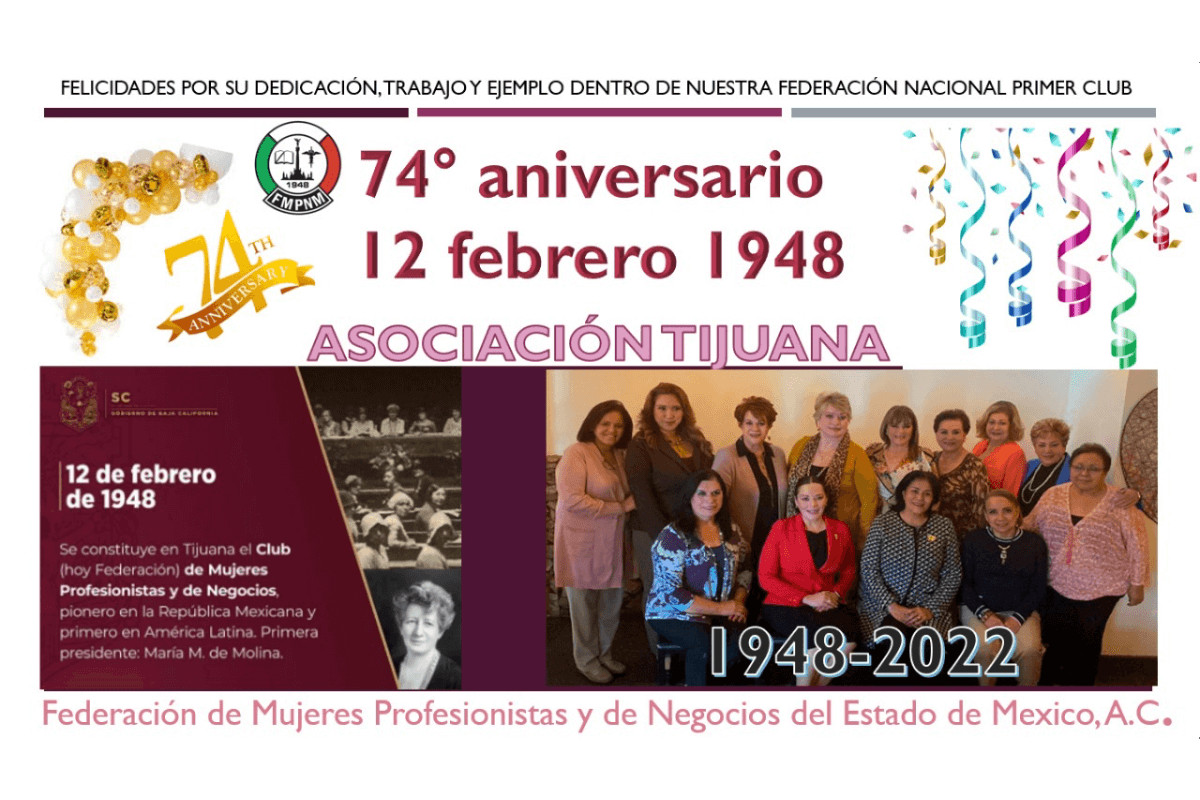 Estando constituido desde 1948 el Club Tijuana, en 1951 el Club Ensenada con su primera Presidenta Profa. Carmen Apodaca de Gutiérrez y el Club Mexicali en 1953 con su primera dirigente Srita. Irma González, convocadas por el Club Tijuana se reunieron las Representantes de los 3 Clubes e iniciaron los trabajos conducentes para integrar la Federación Nacional de Clubes de Mujeres Profesionistas y de Negocios fundándose el 7 de agosto de 1955.