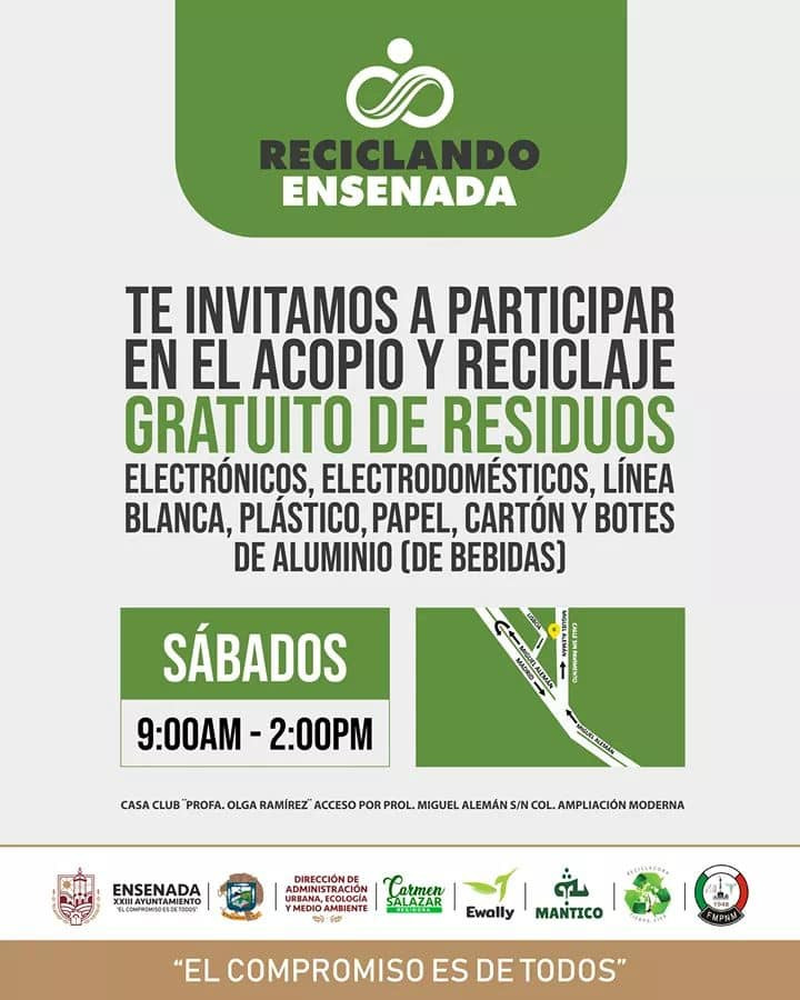Ensenada, Baja California.- Respetando los lineamientos sanitarios por la pandemia del COVID-19, el pasado día sábado 4 de julio del presente año, el Club de Mujeres Profesionistas y de Negocios de Ensenada, A. C. se convirtió oficialmente en el primer "Punto verde", centro de acopio y reciclaje gratuito de la ciudad, trabajando en colaboración con el H. XXIII Ayuntamiento de Ensenada y organizaciones locales de reciclaje.
