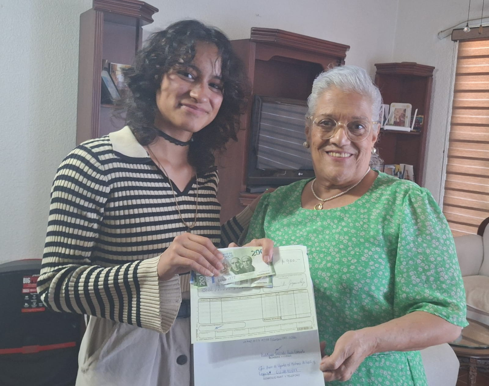 El 13 de febrero del 2026. Entrega de beca por la Tesorera Armida Aguirre a la becaria Paola Rodriguez del Tecnológico de La Paz.